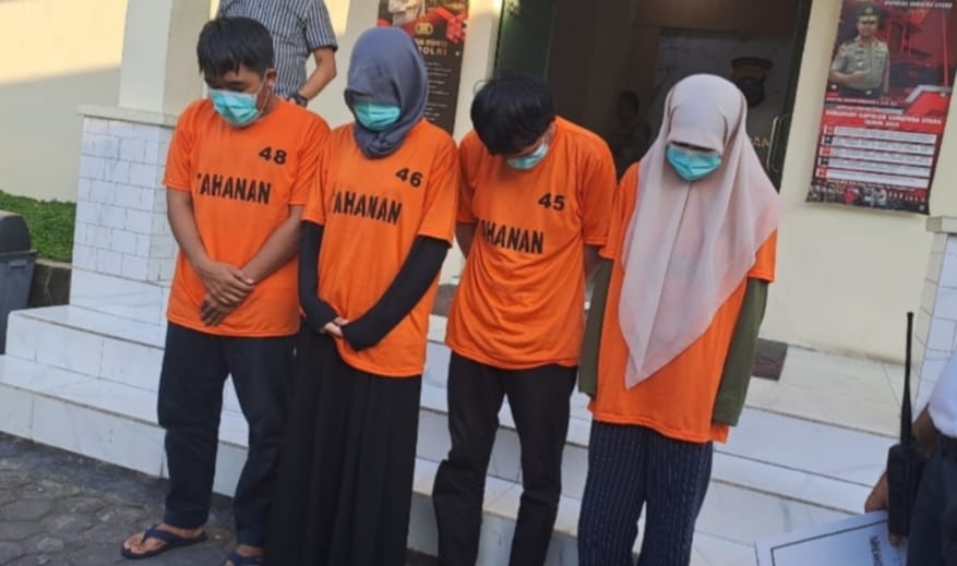 Adapun keempatnya masing-masing berinisial NF, SY, KRA dan AHM. Sedangkan tiga pelaku lainnya dipulangkan masing-masing bernama Ikhsan Mahfudin, Sheady Nyomadi (mahasiswa) dan Akhdan Qodri Fawaz (Marketing Mitra Jaya),