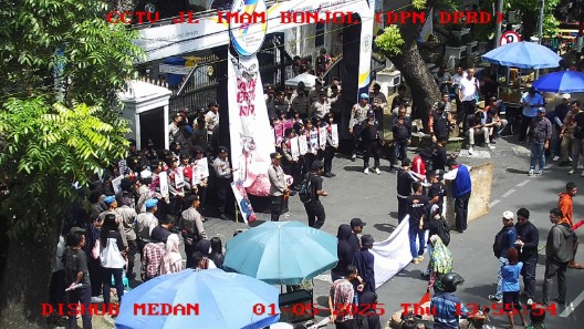 MEDAN | MIMBARRAKYAT.CO.ID – Ribuan buruh dari berbagai elemen buruh berkumpul di delapan titik, merayakan hari buruh internasional di Kota Medan, Sumatera Utara, Kamis (01/05/2025).