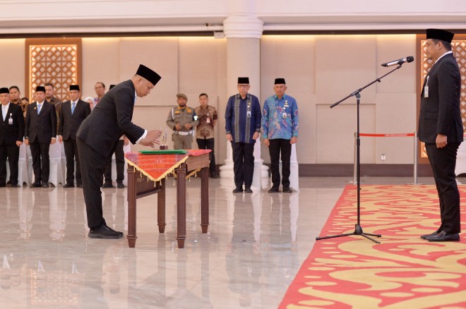 “Saya ucapkan selamat kepada seluruhnya, semoga dapat menjalankan amanah dengan baik. Saya meminta kita semua dapat bekerja sama dan berkolaborasi dalam bekerja. Bapak dan ibu dapat mengerjakan sesuai tugas yang diamanahkan, yakni sebagai pelayan pada masyarakat dan organisasi,” ucap Bobby Nasution pada acara yang berlangsung di Aula Raja Inal Siregar, Kantor Gubernur Sumut Jalan Diponegoro Nomor 30, Kota Medan, Jumat (18/7/2025).