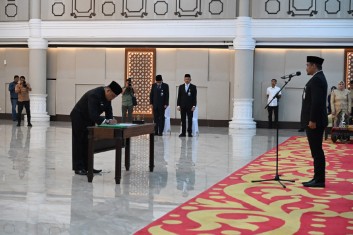 Selanjutnya kepada Asisten Administrasi Umum Setdaprov Muhammad Suib, ia berpesan untuk menyesuaikan diri dengan kondisi Pemerintahan di Provinsi.