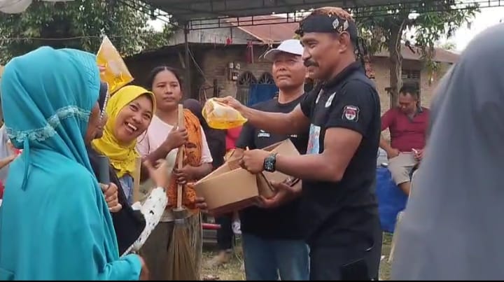 Usai bergotong royong, para warga mendapatkan bantuan masing – masing 1 Kg minyak goreng dari PT Musi Mas yang disalurkan oleh AMPHIBI.