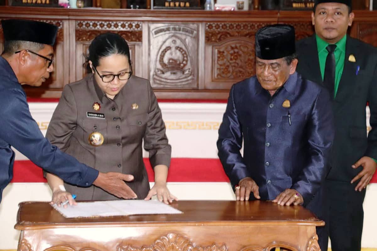 Bupati, Sashabila Mus.dalam sambutannya menyampaikan Ranperda tentang laporan pertanggungjawaban pelaksanaan APBD tahun anggaran 2024 yang diajukan oleh eksekutif telah disetujui bersama antara Pemerintah dengan DPRD.