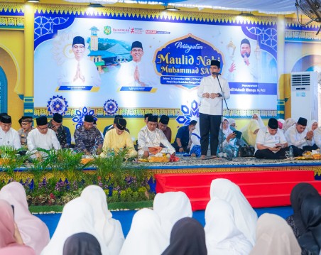 Peringatan Maulid Nabi Muhammad SAW ini turut dihadiri Sultan Deli, Mahmud Aria Lamantjiji Perkasa Alam Shah, unsur Forkopimda Kota Medan, Sekda Kota, Medan Wiriya Alrahman, Datuk Syahlafati Ichsan Seri Indera Pahlawan, para alim ulama, pimpinan Perangkat Daerah, Camat beserta Lurah. (Sarwo/red)
