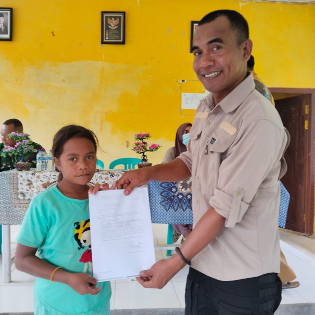 Salah satu yang dilakukan Kepala Desa Peleng ini adalah menyerahkan kartu Jaminan Kesehatan Nasional (JKN) yang dikelola oleh Badan Penyelenggara Jaminan Sosial (BPJS) Kesehatan