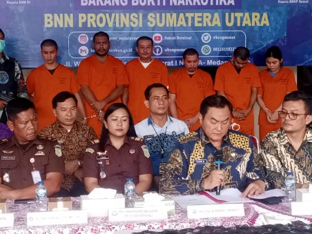 Kepala BNNP Sumut, Brigjen Pol Tatar Nugroho SIK, SH, MH mengatakan dari 5 LKN tersebut ada 6 orang tersangkanya yang juga turut diamankan dan dijerat dengan Pasal 114 ayat (2) Subs Pasal 112 ayat (2) Jo Pasal 132 ayat (1) UU RI No.35 Tahun 2009 tentang Narkotika dengan ancaman hukuman pidana mati, seumur hidup atau paling singkat 6 tahun dan paling lama 20 tahun penjara.