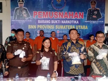 “Dari total barang bukti yang kita musnahkan kali ini setidaknya ada sebanyak 7084 orang anak bangsa yang terselamatkan dari peredaran gelap Narkotika, “ungkap Brigjen Pol Tatar Nugroho yang turut didampingi di antaranya Kabid Pemberantasan dan Intelijen BNNP Sumut, Kombes Pol Charles Sinaga SIK MH, Penyidik Madya BNNP Sumut, Kombes Josua Tampubolon, mewakili Ditres Narkoba Polda Sumut, mewakili Bea Cukai, advokat serta kejaksaan.