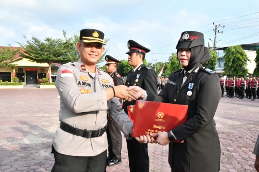 Dalam upacara tersebut, Wakapolres secara simbolis menganugerahkan Tanda Kehormatan Satyalancana Pengabdian kepada 15 personel yang telah menunjukkan dedikasi, loyalitas, dan pengabdian.