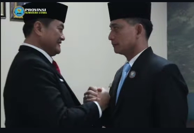 DELI SERDANG | MIMBARRAKYAT.CO.ID – Kepala Badan Narkotika Nasional Provinsi (BNNP) Sumatera Utara (Sumut), Brigjen Pol Tatar Nugroho SIK SH MH melantik Kombes Pol Dr Josua NAM Tampubolon SH MH menjadi Kepala BNN Kabupaten Deli Serdang yang dilaksanakan di Mako BNNP Sumut di Jalan BPPOM, Desa Medan Estate, Kecamatan Percut Seituan, Kabupaten Deli Serdang, Provinsi Sumut, Jumat (27/2/2026) pagi tadi.