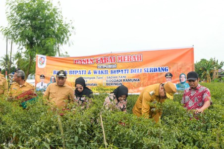 “Kami sebagai pemerintah daerah akan mengambil langsung cabai dari petani, kemudian kita jual ke pasar bebas. Selisih harga nantinya akan kita subsidikan,” ujar Bupati Deli Serdang, dr H Asri Ludin Tambunan yang turun langsung pada panen bawang merah bersama Kelompok Tani Oriza di Desa Sumberejo, Kecamatan Pagar Merbau, dan panen cabai bersama Kelompok Tani Sadar Tani di Desa Sidodadi Ramunia, Kecamatan Beringin bersama Wakil Bupati, Lom Lom Suwondo SS, Selasa (10/3/2026).